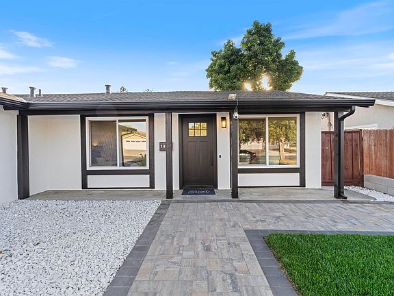 Welcome to this beautifully renovated single-story home featuring 4 bedrooms, 2 bathrooms, and approximately 1,234 sq. ft. of modern living space. The open-concept layout offers a bright living room seamlessly connecting to the stylish kitchen. Enjoy all-new upgrades, including custom cabinetry, marble-look backsplash, new stoves, sinks, hood, and durable laminate flooring. A convenient breakfast bar provides the perfect spot for casual dining and entertaining. This home has been thoughtfully updated from top to bottom with brand-new windows, bathrooms, kitchen, flooring, interior and exterior paint, roof, HVAC system, sub panel, lighting, outlets, landscaping, and garage insulation with drywall. Each bedroom is designed for comfort and flexibility—perfect for family, guests, a home office, or a creative space. Step outside to your private backyard oasis with new landscaping, complete with a lush green lawn and mature trees, ideal for gatherings, outdoor meals, or simply soaking up the California sunshine. Charming curb appeal, a spacious front yard, and an attached garage make this home truly move-in ready. Conveniently located near parks with easy access to highways 680 and 880, this property offers the perfect blend of modern living. Don’t miss the opportunity!