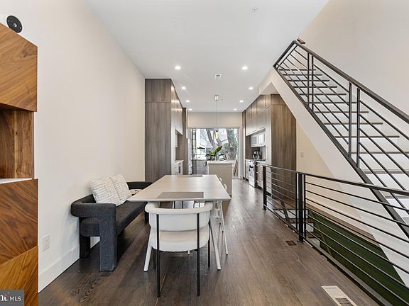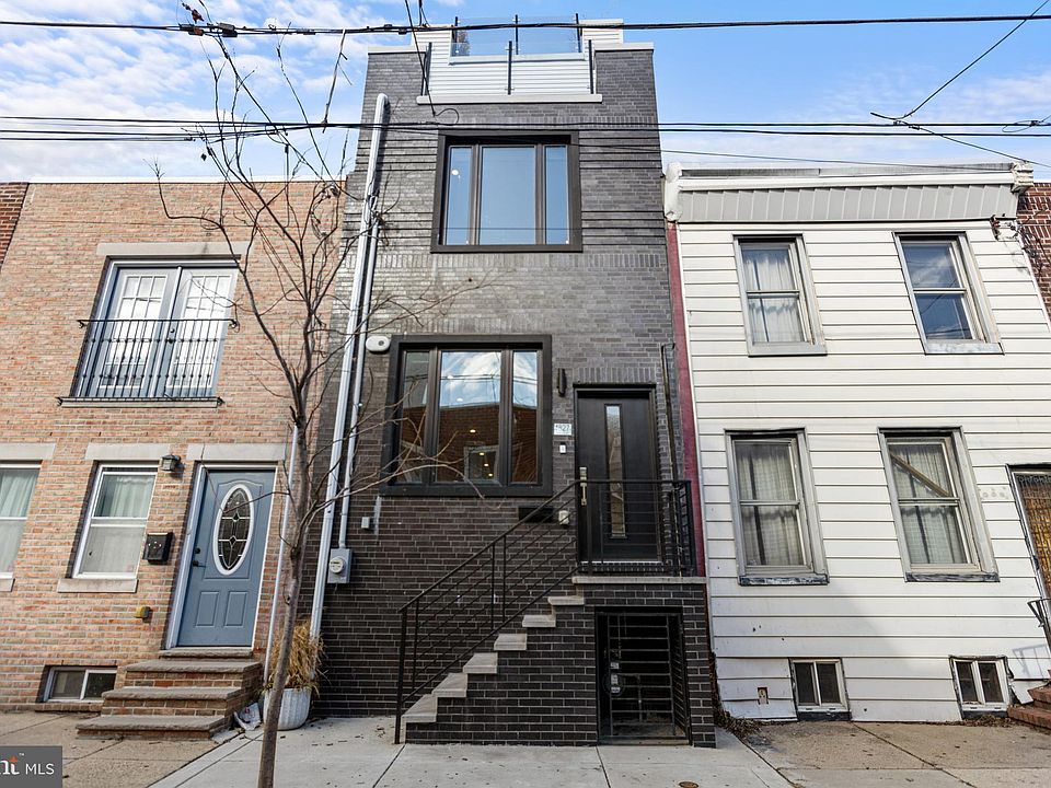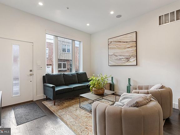 A three-year-young build with approximately seven years remaining on its tax abatement, this 4-bedroom, 3-bathroom stunner in the heart of Point Breeze offers modern living in a central location. Step inside to discover a bright and airy living space with hardwood flooring and recessed lighting throughout. Natural light pours in through the large front window, outfitted with motorized double roller shades—one light-filtering and one blackout—easily controlled with the push of a button. With its 10-foot ceiling height, the spacious open floor plan flows seamlessly from the living and dining areas to the chef’s kitchen, which features LG Smart stainless-steel appliances, quartz countertops, subway tile backsplash, ample cabinetry, and oversized sliding glass doors that lead to a private outdoor patio. The second-floor hosts two large bedrooms, each with real wood blinds and generous closet space. A stylish full bathroom with a shower-tub combo, and a convenient laundry closet with an LG stacked washer and dryer complete this level. The third-floor boasts a spacious primary suite and terrace. The en-suite bath is fully quartz-tiled with a double vanity, touch light mirrors, and a glass-enclosed shower with dual shower heads. One more flight up brings you to the expansive rooftop deck with breathtaking Center City skyline views. Built-in Bluetooth speakers thoughtfully installed on the roof deck, primary bedroom, and main level provide upgraded tech convenience. The fully finished basement provides a versatile space with large ceramic tile flooring and a full bathroom, making it ideal as a fourth bedroom, home office, gym, or entertainment area. This home is located near Chew Playground with walkable neighborhood favorites like American Sardine Bar, Luhv Vegan Bistro, Hot Power Yoga, Chick's, and Dock Street Brewery. Sprouts, Giant, Target and more are a short distance away at Lincoln Square shopping center. Commuting is a breeze with the Ellsworth-Federal Broad Street subway line just a few blocks away, along with easy access to buses 2, 17, and 64. Don’t miss out on this incredible opportunity—schedule your tour today!
