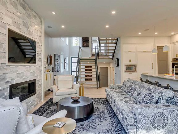 Welcome to an inner-city English garden living - with 2,847 sq ft of luxury situated in the vibrant community of Bankview. Offering 5 bedrooms throughout, this semi-detached walk-out home is perfect as an executive and/or family home. Built by luxury builder Grandscape Homes with superior finishes and completed by interior designer Denise Panagakos, this stunning home blends contemporary design with comfortable living finishes. The S & W facing main level has 10 ft ceilings, a two-storey front foyer and floor to ceiling windows, flooding the home with natural light. The gourmet kitchen has a large island with breakfast bar, pantry plus amazing storage. Top end appliances include a 5 burner Wolf Cooktop, dual Wolf wall ovens (one convection) and an integrated Sub-Zero fridge. The open living/dining area with gas fireplace leads to a south facing balcony through large sliding doors. On the 2nd floor, French doors lead to the private primary suite that occupies the entire level. Complete with a gas fireplace, a large walk-in closet, and a north facing balcony with downtown views. The 5-pc ensuite has a soaking tub, double vanity, a large steam-shower, and heated flooring. The 3rd level has 2 large bedrooms, both with walk-in closets. This floor also includes a 5-pc bathroom and a laundry room with sink and storage. On the 4th level is a very large loft bedroom/suite with downtown views and a 4-pc bathroom - perfect as a bedroom, office space or living area. The fully finished walk-out level has heated polished concrete floors, a 5th bedroom or office, and a 3-pc bathroom with an oversized walk-in shower. This level is the perfect entertaining area with a wet bar and wine room off the sitting area and walk-out covered patio. The sunny south facing back yard is professionally landscaped with plenty of shrubs and trees creating a private and quiet oasis. Backing directly onto a city park the home's multiple outdoor living spaces will bring the outside in, either from the main living area balcony, or the large lower patio. Throughout the entire home you will find custom millwork cabinets providing ample storage. This clean air home has high efficiency heating/ventilation and includes central air conditioning. The double attached finished garage also has heated floors. Its minutes to downtown and walking distance to the shops, restaurants and amenities of either 17th Avenue or Marda Loop - also close to Mount Royal, Downtown Core, University of Calgary, Foothills Hospital Campus, SAIT & Kensington. Experience both quiet park and vibrant inner city living & book a showing with your realtor today!