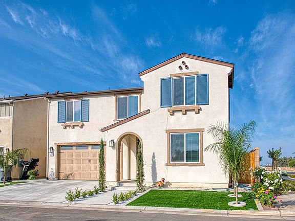 This home offers five bedrooms, three bathrooms, and a loft within a well-designed floor plan. A two-car garage provides ample parking and storage space. Inside, 6 x 24 tile plank flooring creates a warm and inviting atmosphere. The kitchen and bathrooms are finished with white quartz countertops, delivering a clean and modern aesthetic. Contemporary door handles, faucets, and fixtures enhance the home throughout. The kitchen features a 4 x 16 full tile backsplash and upgraded white cabinetry, combining style and functionality. An open layout seamlessly connects the kitchen to the great room, creating an ideal setting for both daily living and entertaining. A bedroom and full bathroom are conveniently located on the main level, offering flexibility for a variety of living arrangements. The front and back yards have been fully landscaped with turf, cement, and white rock, providing a clean and low-maintenance outdoor space.