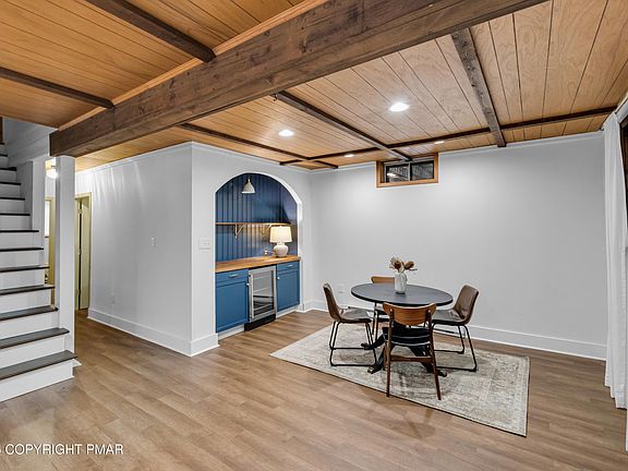 Mountain Charm meets Modern Living in this 4/5 Bedroom, Plus Bonus Room, Raised Chalet. Located on a beautiful, wooded lot in the amenity filled Community of Locust Lakes Village right in the Heart of the Poconos. Turn key vacation home, coming fully furnished! Two Stone fireplaces, (ventless propane inserts) warm up those chilly nights, providing beautiful ambiance and efficient heat. A large upper deck area perfect for Barbecues, enjoying morning coffee or an evening nightcap. Modern kitchen with granite countertops and stainless appliances (brand new dishwasher). Farmhouse bathroom upstairs with tile tub surround and quartz vanity. Rustic Hardwood floors throughout the upper floor. Unique and beautiful wood accents, grace the ceiling of the lower level. Dry bar with refrigerator in lower level rec room. Enjoy your hot tub for relaxing after a day of skiing, hiking, fishing, swimming at the lake or shopping. Lovely fire pit area and double driveway are additional loved features of this home. Community boasts 3 lakes, swimming, boating, sports courts, Chalet with community events, ski hill, sledding hill, golf cart and ATV friendly! Cross listed as a rental as well. Don't let this one pass you by! Set up your showing today!!
