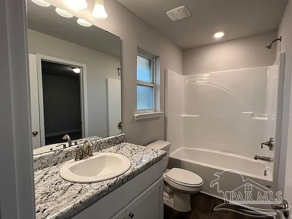 Welcome Home! This new build is now complete! what an amazing new home to herald in 2024! A perfect family home in Cantonment, close, but not too close, to all Pensacola has to offer. From the 10+ foot granite topped counter-high island bar and the capacity to mount a large screen TV on the opposite wall this open plan allows everyone to visit and watch the games with space to spare! A split plan that boasts a jack & jill bath, plus another bed and bath on the one side. The Master Suite offers space and seclusion for your pleasure. In Pecan Valley you will find our newest floor plans of brick estate homes with a sprinkler system, architectural shingles, hurricane storm panels, double pane low E windows, and sodded yards to 120" from front property line. Other standards are: quality bump and stagger upper cabinets with hidden hinges and crown molding, stainless Frigidaire appliances (electric stove, microwave, dishwasher), Moen faucets, knockdown ceilings and orange peel textured walls, 5 14" baseboards, LED lighting in kitchen and over tubs & showers, 50 gallon water heater, and much, much more!