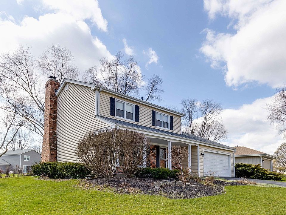 Nestled amidst a quiet suburban street, this classic two-story colonial exudes timeless charm and potential. Its exterior is adorned with a picturesque front porch, where inviting rocking chairs beckon residents to relax and savor the peaceful ambiance of the neighborhood. Stepping through the front door, the spacious living room includes new carpet and opens to the family room with majestic brick fireplace, evoking warmth and coziness on chilly evenings. Sliders in family room invite streams of natural light, casting a soft glow upon the space, Wood floors in family room have been recently redone ready for the new owners. Current owners did use this as a dining room but the light fixture could easily be changed to a ceiling fan. Adjacent to the family room French doors open to the eating area which offers ample space for gatherings and entertaining, including Anderson sliding glass doors(with lifetime guarantee) leading to the deck that extends the living space outdoors, perfect for summer barbecues or morning coffee. The kitchen, though brimming with potential, awaits a modern touch. Its layout is functional, with ample cabinet space with an updated skylight that adds tons of sunshine. The spacious laundry room right off the kitchen is perfect place for laundry and mudroom with access to the backyard. Ascending the staircase, you'll find three bedrooms, each offering a retreat from the hustle and bustle of daily life. All newer doors (except the linen closet door 3rd bedroom closet door)The primary suite is sized to make it a perfect place to end the day! A private en-suite bath offering convenience and privacy. Two additional bedrooms provide flexible space for family, guests, or a home office, each boasting the potential to be transformed into personalized sanctuaries. Check out the partial basement that could be converted to future living space. Ample storage in the crawl space plus brand new 50 gal water heater! Completely brand new roof including insulation, soffits and oversize gutter approximately 2022. Outside, the property offers a spacious backyard, providing endless possibilities for gardening, outdoor activities, or simply enjoying the tranquility of nature. The Tullamore neighborhood includes Leo Leathers park just a few blocks away with Frisbee, baseball and large playground. There is a private subdivision pool for summer fun within walking distance as well. Great location for shopping, schools and restaurants. This home is in need of some updating but brimming with potential, this charming colonial invites its new owners to infuse it with their own personal style and vision, transforming it into a beloved home where cherished memories are made for years to come. ****This home being sold as is!***