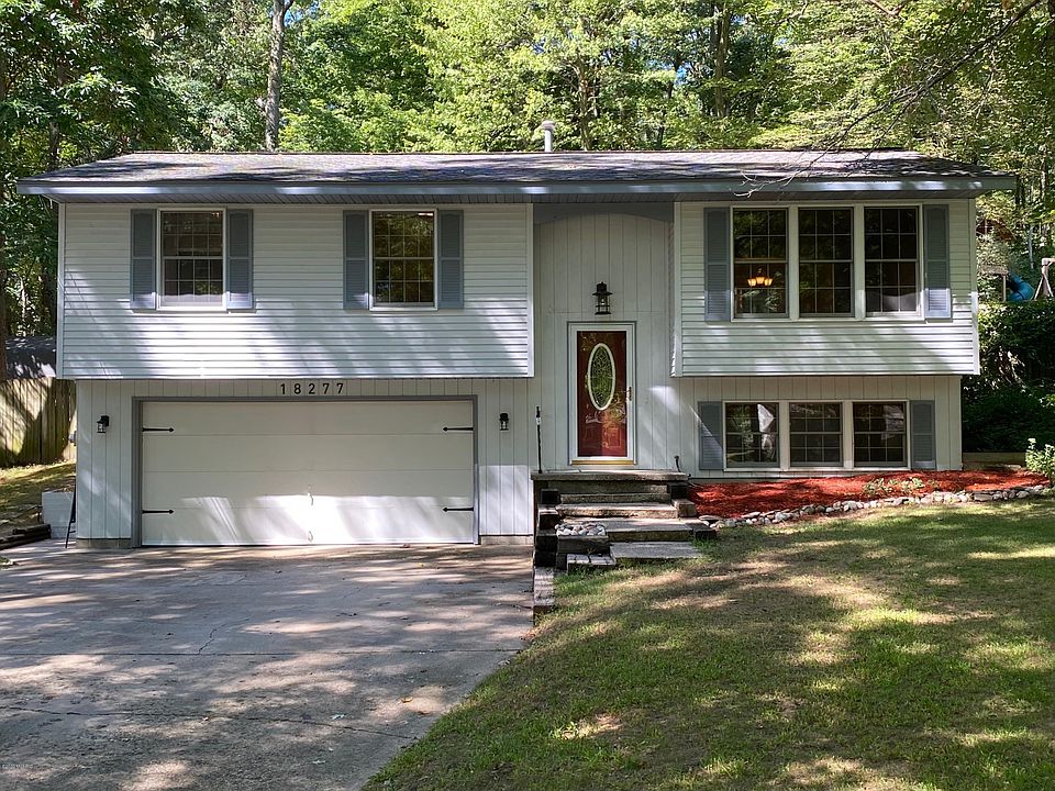 Beautiful 3 bed 2 bath freshly painted and cleaned home ready for move in! Home features lovely wooded setting with fenced in back yard, located 500ft from the Spring Lake Bike Path and 1/2 mile to lake access. All beds are featured on the main level with remodeled bath attached to the master bedroom, kitchen/ dining area and living space feature nice hard wood flooring. Screened in back porch makes for great entertaining. Lower level hosts large living area that could be refinished into a 4th conforming bed, bathroom and 2 stall garage.