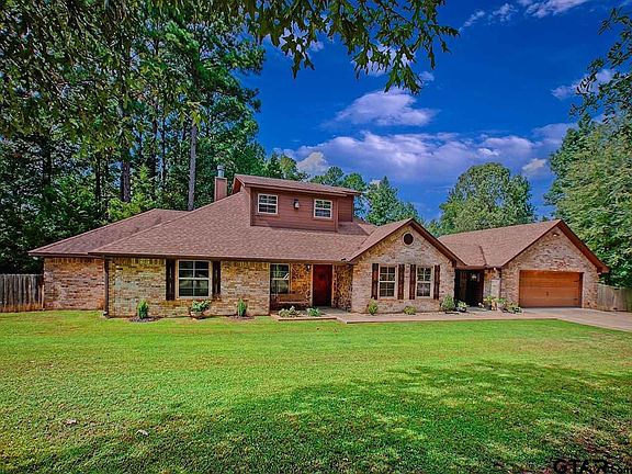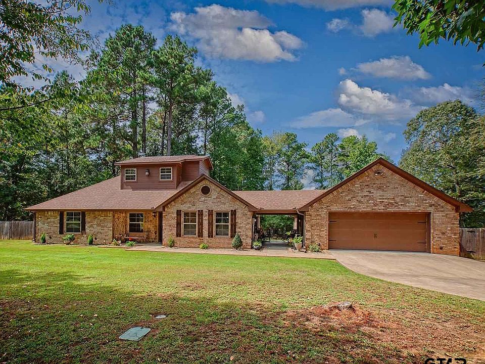 Wow! New Price $390,000. Seller will pay $5,000. Buyer Closing Costs & 1 Yr Home Warranty of $550! Contingent Buyer’s home just fell out of contract, so their loss is your gain! Beautiful Views of Mature Trees from Backyard in the desirable East Shore Estates community on the south end of Lake Tyler East, this custom-built 2017 home sits on two spacious lots totaling approximately one acre. Offering privacy, comfort and style, this 3-bedroom, 2.5-bath home features an oversized 2-car garage with an attached home office or "man cave" overlooking the backyard. Step inside to an inviting open-concept living area, filled with natural light. A wood-burning fireplace with a stone hearth adds warmth & charm. The kitchen is a chef’s delight, featuring granite countertops, stainless steel appliances, custom cabinetry, a trash compactor, and a breakfast bar for extra seating. Enjoy your morning coffee in the breakfast nook with picturesque views of the large, fenced backyard. The primary suite is a private retreat on the main floor, split from the guest bedroom for added privacy. The private bath features a corner soaking tub, a walk-in shower, and unique glass vessel sinks with underlighting for a soft nighttime glow. A second bedroom and full guest bath are also on the main floor. Upstairs, you'll find a third bedroom with a private half bath and a screened-in balcony—a perfect spot to take in the breathtaking sunset views. Outdoor spaces invite relaxation with a cozy breezeway, ideal for unwinding in the shade. The oversized two-car garage comes with an attached "man cave, perfect for watching football or enjoying hobbies. Additional storage is available in the 10’ x 20’ storage building with two lofts. Located in Arp ISD, this home is part of a friendly, well-maintained community with low HOA dues of just $75/year. You'll love the proximity to the community boat ramp and pavilion, making lake life more accessible than ever! Don’t miss this incredible opportunity!