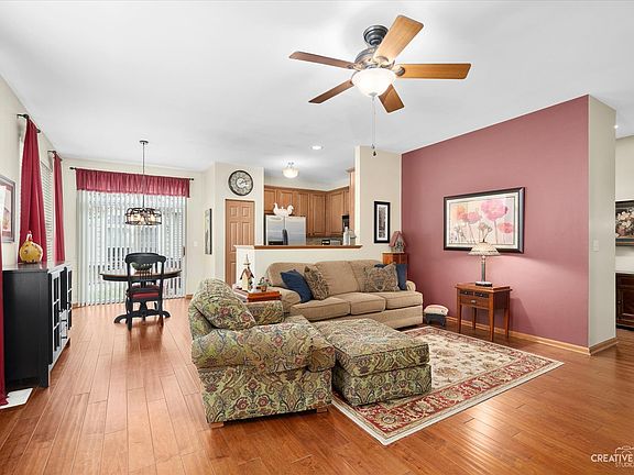 Beautifully appointed ranch home in popular Stonegate West! First time on the market! With over 1,200 square feet, no stairs and 2 1/2 car garage this home has everything you are looking for! Eat-in kitchen, great room, primary bedroom with full en suite bath and large walk-in closet, second spacious bedroom also has a walk-in closet, another full bath and laundry room. Plus there is a private patio where you can enjoy the outdoors; a storage area too; new furnace (2021) and air conditioner (2022). Easy access to I88. Welcome Home!