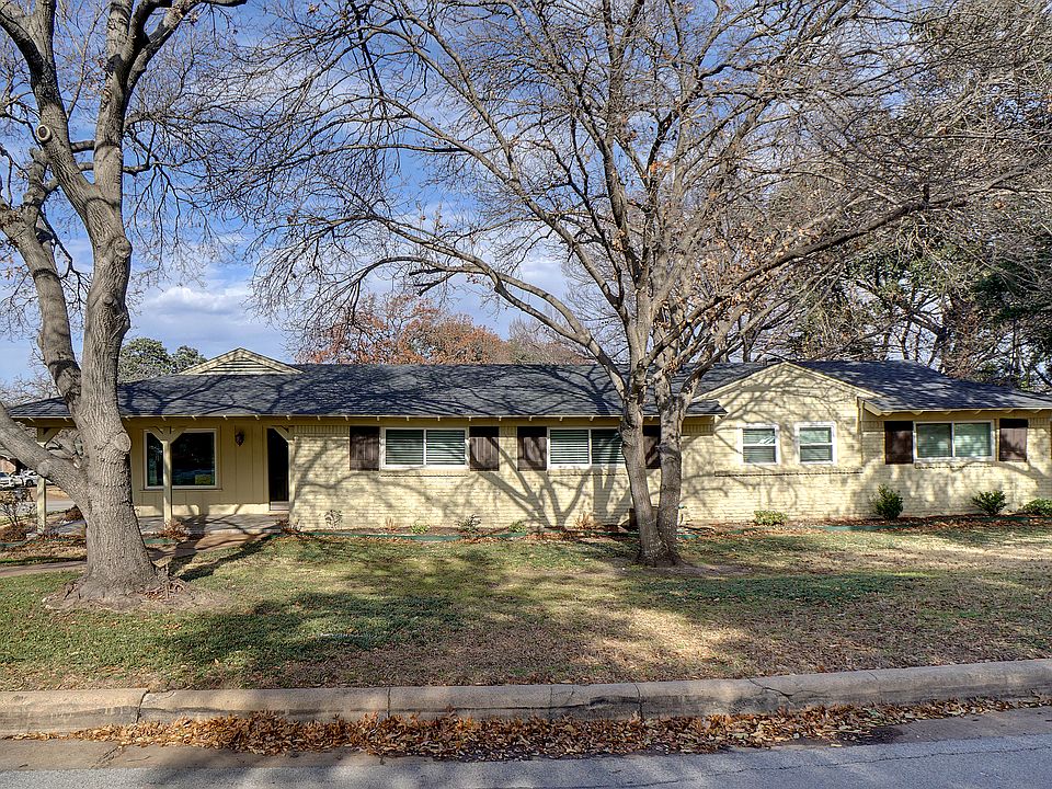This charming 3 bedroom 2 bath ranch style home on an expansive corner lot with circle drive located in coveted Fort Worth neighborhood is move-in ready. Open concept home is completely updated with all new appliances, farm sink, large marble island, wine fridge, and hard wood floors throughout. Complete with extra room behind French doors that is perfect for a dining room, office, or playroom. Mature trees, large back covered-patio, and fire pit is optimal for entertaining. New updates with in a year include: Exterior and interior paint, Crown Molding, Landscape lighting in front and back, 5 Japanese Maples, new landscaping in front, smart home security system, Pocket door in master bath and New appliances.