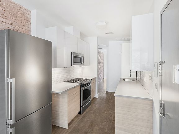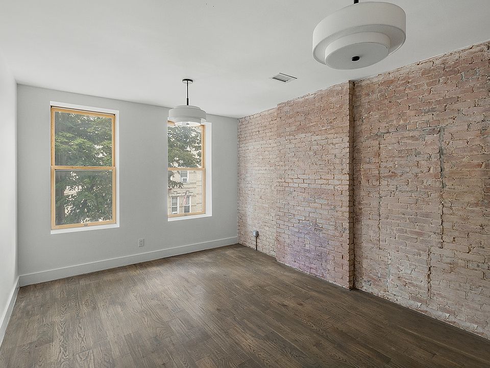 Welcome to Apartment #2L at 18-28 George Street! EMAIL IS THE PREFERRED METHOD FOR SCHEDULING A SHOWING OR ANY OTHER INQUIRIES. All showings will be by appointment only. This second floor 1-bedroom, 1-bathroom apartment enjoys southeastern and northwestern light, a renovated kitchen, and an open plan living and dining area. The apartment's living room is welcoming and bright, featuring two large windows facing northwest and an exposed brick wall. A fully anointed kitchen with Caesarstone countertops, white cabinetry, and full-sized stainless steel appliances, including a dishwasher, is located next to the living area, allowing for clean sightlines throughout the apartment. The bedroom features ample closet space. One full bath is located in the center of the apartment, complete with a shower/soaking tub. Modern amenities in this beautifully renovated apartment include central air conditioning, a fully renovated kitchen, and recessed lighting throughout. Cooperating brokers are welcome, please collect your own fee.