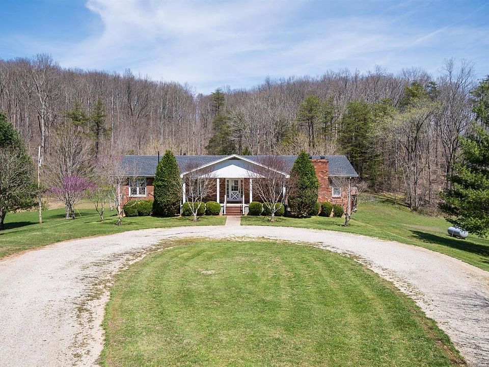 Brick ranch on walkout basement. Secluded and nestled in the Daniel Boone National Forest. House boasts large rooms including the kitchen, with a wrap around counter and two sinks, a separate dining room and huge family room with a wood burning fireplace insert. Beautiful manicured land surrounding the home along with acres of woods for the hunter enthusiast. Property is sold as-is, seller will make no repairs.