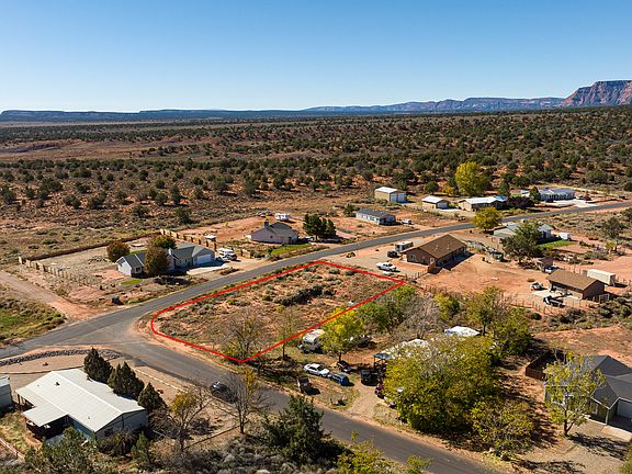 Discover this charming 0.45-acre lot nestled in the tranquil back section of Kanab Creek Ranchos, positioned at the corner of Lee Drive and Navajo Drive. This parcel offers ample space for your dream home while maintaining a secluded, private setting. The zoning allows for a smaller home, with a minimum square footage requirement of 720 square feet, providing the flexibility to build a cozy and efficient residence tailored to your lifestyle. Enjoy breathtaking views right from your property, including stunning red rock views and expansive vistas of the Kaibab Plateau to the south. Conveniently located with easy access to two popular trailheads-Bunting Trail and Cottonwood Trail-perfect for outdoor enthusiasts who enjoy hiking, trail running, or exploring nature. (Buyer to verify all)