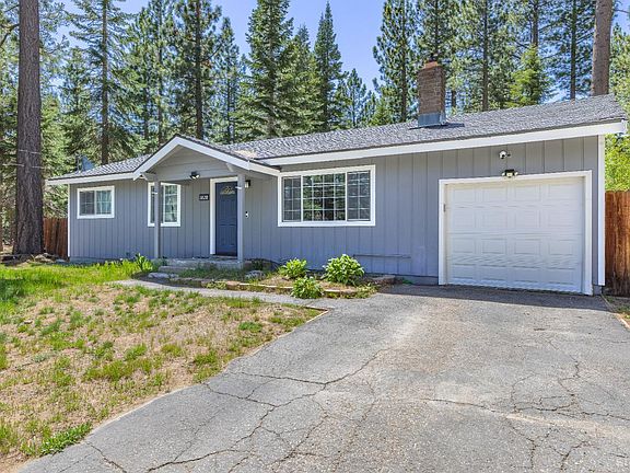 A well-maintained rancher set on a quiet street in the county. With a large, level lot, the street is filled with several publicly owned parcels including two California Conservancy lots and one USFS lot siding the home - giving the property a lovely forest feel. The open floor plan is centered by a wood burning fireplace and the kitchen has a breakfast bar, granite countertops and stainless steel appliances. Down the hall sits the primary bedroom, two additional bedrooms and a full bath. The backyard is the perfect place to entertain in the summer and has a shed to store all of your outdoor toys. Set back from the hustle and bustle of town but still just minutes to the beaches, world-class skiing, casinos and all that South Shore has to offer - welcome home!