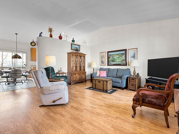 Phenomenal condo offering! Living is easy here with this amazing condo that offers and open concept floor plan and wonderful amenities. The living room features volume ceilings and is drenched in light as it opens to the dining space and kitchen. You will appreciate the counter tops and ample cabinetry as well as the convenience of the eat-in kitchen that offers access to the rear deck. Throughout the rest of the condo, you will enjoy two generous sized bedrooms and two full bathrooms, one being the primary suite. Exterior amenities include an oversized two stall attached garage, a rear deck that includes pond views and more! With main floor laundry and a well maintained condo community - this is such an exciting offer! Schedule your showing today!