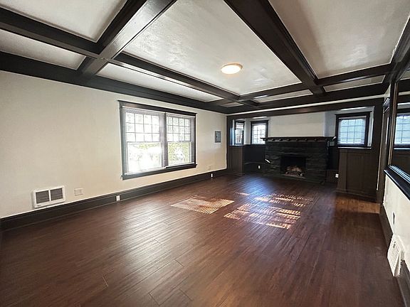Experience the timeless allure of this charming 1 bed, 1 bath apartment featuring Old World charm with sun-drenched interiors and elegant dark finishes. Highlighted by stunning ceiling beams, a decorative fireplace, and classic wood paneling, this spacious home offers a roomy bedroom with a double-door closet and a large kitchen. Convenient on-site laundry, off-street parking, and pet-friendly policies make comfortable living effortless, blending historic elegance with modern amenities in a welcoming community.