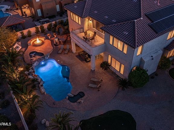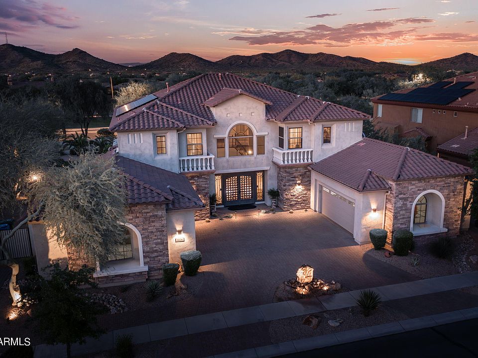 LUXURY living at its finest in this N. Phoenix Toll Brothers Mirador model behind the gates of one of the most sought after valley communities, Sonoran Foothills! Features 5,472 sq ft, 5 beds, 4.5 bath (1st floor ensuite), MASSIVE 15k+ sq ft wrap around private lot with no neighbors behind & incredible mountain views. RESORT style backyard complete w/ Heated Pool, rock water feature, fire pit, hot tub, putting / chipping greens, & BBQ for all your entertaining. The lighted front rock water feature leads you into the front circular drive courtyard, past the 4-car garages & to the Huge Iron double front security doors. WOW majectic dual curved staircase, complete home theater, gourmet kitchen with high end stainless appliances w/ GAS cooktop (Newer GE built in ridge), & seperate home office. Bonus, OWNED Solar system to reduce all your electic bills. This home features fabulous finishes and impeccable attention to detail that awaits the most discriminating buyer. Wonderful community has year round activities, pools, parks, basketball, pickleball, tennis volleyball, tennis courts etc & just completed HUGE $ renovation. Hiking & biking trails everywhere with K-8 school in the immediate neighborhood. You will fall in love with Sonoran Foothills! Too much to list..Schedule your private showing today! Welcome to your new Arizona Resort Home! Come SEE this one today!