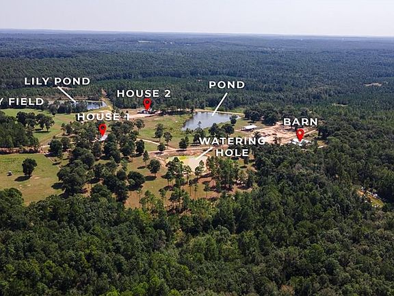 Welcome to 59 acres of pure country living — where comfort, space, and endless possibilities come together. At the heart of the property sits a charming 3-bedroom, 2-bath brick home with a welcoming front porch and plenty of room to relax and entertain. Just steps away, a separate 2-bedroom, 2-bath guest house offers the perfect setup for extended family, visiting friends, or even rental potential. This land is designed for both work and play. A spacious 80x60 hay barn, well-equipped 40x48 workshop with 20x48 equipment lean-to, 60x36 equipment shed, and chicken house feed storage with run provide everything you need to keep your farm or hobby operation running smoothly. The property is approx. 80% fenced and cross-fenced with man-made watering hole, making it ideal for livestock. For those who love the outdoors, a stocked 2.5 +\- acre pond creates a beautiful setting for fishing, quiet reflection, or simply watching the sun set across your own private landscape. 5 +/- acre natural lake with wide open pastures, mature trees, and peaceful views in every direction, this is more than just a property — it’s a lifestyle. Whether you’re looking to farm, raise animals, or simply enjoy the privacy of country life, this 59-acre retreat has it all.