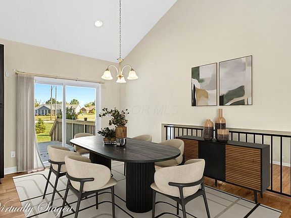 Step inside to an expansive main level featuring living, dining, and kitchen areas with 15' vaulted ceilings and gorgeous hardwood floors flowing throughout. The well-designed kitchen is a chef's dream with granite countertops, a large island, stainless steel appliances, and recent updates including faucets (2023) and a microwave (2023). The rear deck extends entertainment possibilities for gatherings and relaxing evenings outdoors.