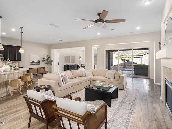 Check out this 4 bed, 2.5 bath residence now on the market! A manicured landscape, 2 car garage, paver driveway, and an RV garage + RV gate & parking are just the beginning! Discover an open floor plan w/wood-look tile flooring and warm palette throughout. The chef's kitchen is comprised of wood cabinetry w/crown moulding, a walk-in pantry, granite counters, tile backsplash, SS appliances, pendant & recessed lighting, and an island w/a breakfast bar. The primary bedroom boasts a walk-in closet, and a full bath w/dual sinks for added comfort.