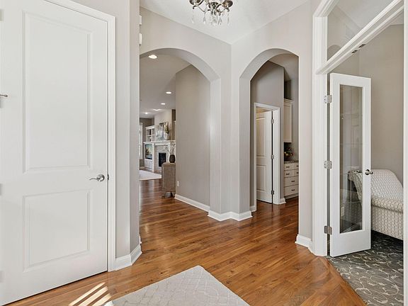 Experience luxury living in the sought-after Bellante neighborhood. This stunning rambler-style detached villa sits on a quiet cul-de-sac, offering serene wooded views and the perfect blend of comfort and sophistication. Designed with exceptional craftsmanship, the home showcases rich black walnut hardwood floors, custom cabinetry, 10' ceilings on both levels and built-ins throughout. The main level features a gourmet kitchen with granite countertops, abundant storage, and a spacious dinette, complemented by a vaulted sun-drenched sunroom. A private office, convenient laundry, and a luxurious primary suite with spa-like bath and dual walk-in closets complete the main floor. The walk-out lower level is designed for both relaxation and entertaining, with a family room featuring a fireplace and built-ins, a custom bar with sink and beverage fridge, a game room, and plenty of storage. From thoughtful details to top-tier finishes, this home truly has it all. Brand new roof 2025. Buyer and buyer's agent to verify measurements.