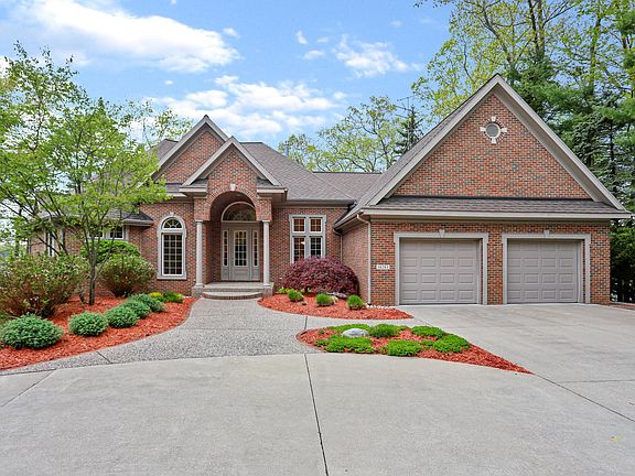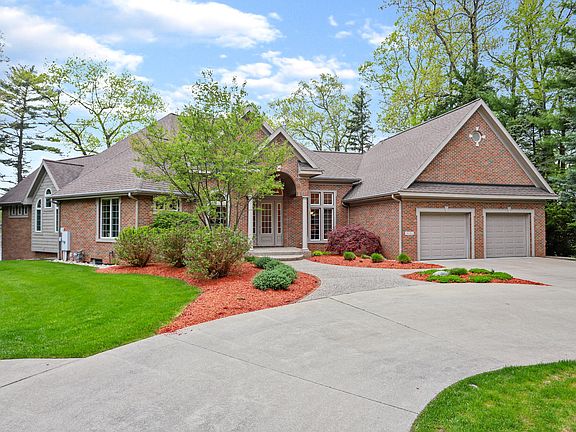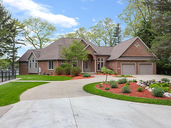 Spring Lake waterfront! This amazing custom built home is situated on 2.5 acres and claims the best privacy on the lake. The list begins with 180' of prime frontage with magical views of the lake on both sides of the house the minute you arrive. A total of 4147 sq. ft on the main and lower level walkout is only outdone by the expansive windows with views from all rooms. A large open foyer shows off the Living room with its 14 ft ceiling, and a 2 sided gas log fireplace that is shared with the informal dining room. The kitchen has a large center island with granite, a wet bar and again views of Spring Lake. A beautiful open sitting room, a very large main floor master with 2 walls of windows and a huge master bath. See video tour.