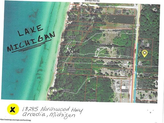 The nicest 1.5 acres on M22...Northwood Hwy in Arcadia! Mature and Beautifully wooded 1.5 acres is a perfect spot for a new home/cabin/rental. Property also has a nice storage shed, electricity & older well that supplied a mobile home years ago. Take a walk or ride only .08 miles (2 min) from "On Top of the County" when you reach the Arcadia Overlook (known as "Inspiration Point"). So many things to do in the area...your only 1.4 miles from Arcadia Beach (Lake Michigan), 3.5 from Arcadia Bluffs Golf Course, 0.8 miles to Arcadia Lookout (M22), 1.4 miles to Arcadia Dunes, 14.6 miles to Crystal Mountain Ski and Golf, 2 miles to St. Pier Mountain Bike Trail, 13.5 miles to Crystal Lake beach...Not to mention Platt River, Bestie River, Betsie light House and Federal Land!!! JUST GO South 18 miles to Little River Casino and Manistee is right down the road! NEVER BORING IN MANISTEE MICHIGAN!