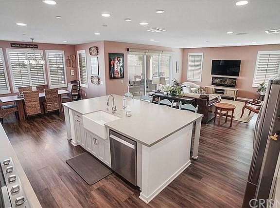 Highly Desirable Lyra Skyline Home with Owned Solar! This homes curb appeal starts with the landscaped front yard and paver driveway. Two Story Entry with Luxury Plank Flooring that flows throughout the first floor. Gourmet Kitchen features Quartz counter tops, Convection Oven, Microwave, 5-Burner Gas Cooktop, Farmhouse Sink, Spacious Island/Breakfast Bar, Pots & Pan Drawers, Soft Close Hardware and Walk-In Pantry. Kitchen is open to Dining and Family Rooms, perfect for entertaining! Family Room with Surround Sound and Stackable Sliding Glass Doors that open completely to the California Room. Bedroom Two is located on the first floor next to the Three-Quarter Guest Bathroom with walk-in shower. Loft/Bonus Room can be used so many ways! Master Bedroom Suite with expansive Walk-In Closet with Organizers. Master Bathroom features soaking tub, walk-in shower, spacious dual sink vanity and water closet. Three additional Bedrooms with spacious closets are all located upstairs along with a Full Guest Bathroom with dual sink vanity. Wrap around stone paver patio with covered California Room. Fully landscaped Back Yard with Lemon, Lime, Orange and Peach trees. Upstairs Laundry Room with sink & cabinets. 3-Car Tandem Garage. Amenities galore: Plantation Shutters, Recessed Lights, Tankless Water Heater, Ring Doorbell, Ample Storage, Dual Zoned HVAC, Solar System, Sprinkler System and drought resistant landscaping. HOA fees include Pool, Spa, Playground, Clubhouse, Gym, Walking Trails and BBQs. Close to Shopping. Easy Freeway Access. Dont Miss This One!!!