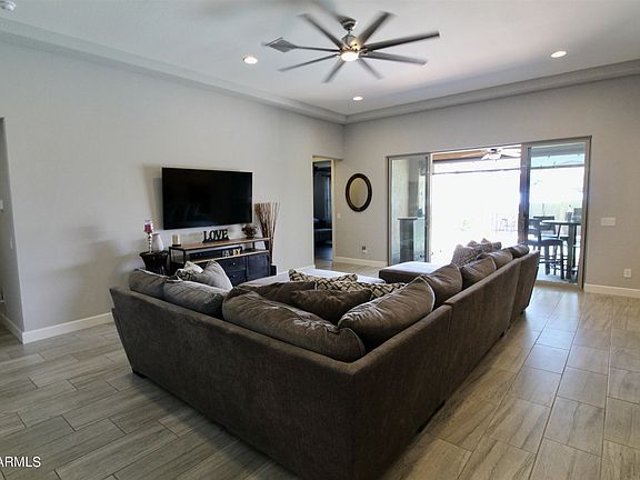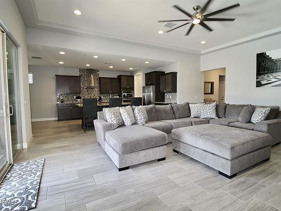 LOOK NO MORE... SOLAR OWNED! Your luxury private POOL home awaits you!! Everything you could wish for in a home. This beautiful one story is located in the sought-after Estrella Mountain community. An open floor plan, huge family room, upgraded kitchen with a huge center island, granite counter tops and an unbelievable walk in pantry. Private master bedroom is conveniently located on the opposite side of the other four bedrooms. All rooms have newly upgraded vinyl plank flooring, solar screens on windows, custom sun shade on the covered patio, newly added pavers in front and back yard, newly painted walls including garage, water softener, and did I mention PAID SOLAR!!! Amazing, open concept home is warm and welcoming. MUST SEE!!Use ShowingTime to schedule showings Or contact LA.