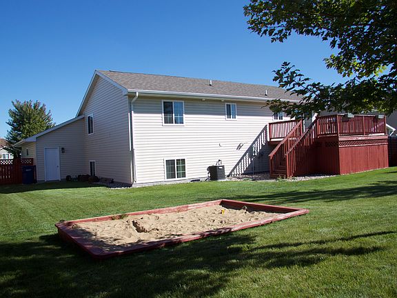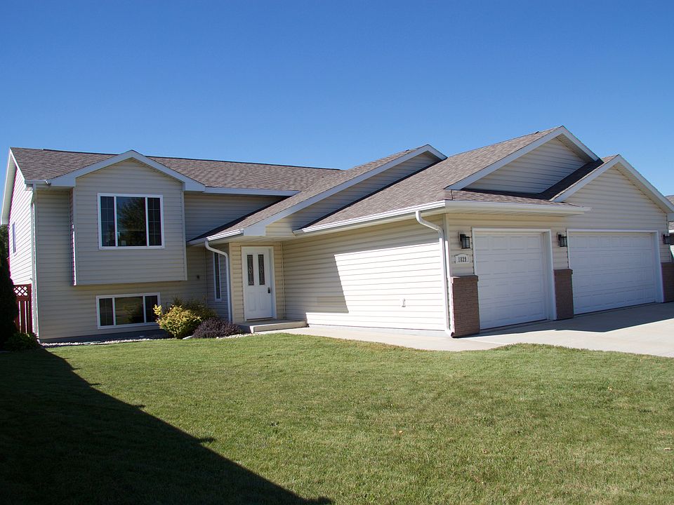 Be sure to check out this well maintained split level home located in Northridge Addition, just a hop and a skip from the new middle school! 2,380 Total Sq. Ft. (all finished but utility room in basement). Built in 2007, this home features an open concept between the living room and kitchen with vaulted ceilings. The kitchen holds Timmerman cabinets and stainless steel appliances. Master bedroom with master bathroom & walk-in closet. In the basement you will find a large family room ready to be set up to your liking, including a wet bar with Kannas cabinets highlighted with under cabinet lighting. You will also find light dimming switches in various areas throughout the house. The garage is finished and heated and includes higher end garage doors for extra insulation (2 floor drains as well). Sprinkler system to maintain a healthy, green yard that is completely fenced in! Don't miss out on this one! (PP: Refrigerator, Stove, Dishwasher, Microwave, Garage Heater, Window Treatments, Sump Pumps (2). Negotiable Items: Washer/Dryer, Mini Fridge in Basement)