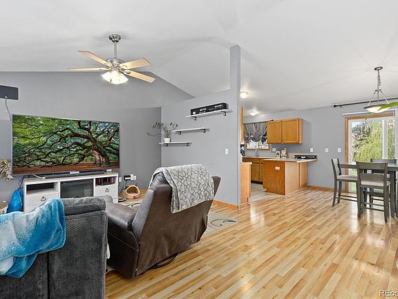 Great ranch-style home in a wonderful Johnstown location. Nestled in a quiet, laid-back neighborhood where neighbors look out for one another, this home offers comfort and connection. This community is not in a metro tax district means no extra fees! Easy maintenance laminate wood floors and vaulted ceilings welcome you as you step inside. The open layout effortlessly combines dining and kitchen spaces, creating an ideal setting for entertaining or everyday living. The kitchen features modern stainless steel appliances and ample cabinetry for storage and functionality. Three comfortable main-level bedrooms include plush carpeting, with the primary suite offering its own private en-suite bath. The full unfinished basement provides excellent storage space, room for a home gym, or the potential to finish and expand your living area to suit your needs. A convenient half bath is already in place downstairs. The private, flat backyard is a great size for relaxation or play, and the heated garage adds year-round convenience. Recent updates bring peace of mind with a new roof and exterior paint in 2024, a new water heater in 2023, and new HVAC in 2021. Perfectly located just minutes from downtown Johnstown, offering easy access to groceries, the YMCA, dining, shops, and only five minutes to I-25. Close to a lovely community park, this home combines small-town charm with modern comfort.