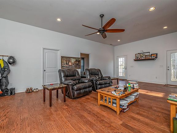 SELLERS WILL DIVIDE (Tax ID# 4-24-00-030.03) Built in 2014, this 1,200 sq ft home offers an open floor plan. There is a large deck off the front door for grilling and entertaining. The kitchen has stainless steel appliances, with a walk in pantry and laundry room. Off the kitchen is a large living room that is combined with a dining space. There are two bedrooms and a large full bath. The two car attached garage is 39x39, has vaulted ceilings, with one standard size door and a commercial size door. Car lift does not convey. Sale also includes (Tax ID# 4-24-00-030.04) This unbelievable property has 78.34 acres located in the growing area of Woodruff. Back side of property borders the Enoree River which gives you your own private beach. It has several deer stands, cut trails, a creek, pasture and numerous hardwoods. Heavily wooded with tons of mature timber that could be cashed in on. Perfect for a hunting club, or for creating your own country home or horse farm. Country living with a 25 minute drive to I-85, 10 minutes from Five Forks and Fountain Inn.