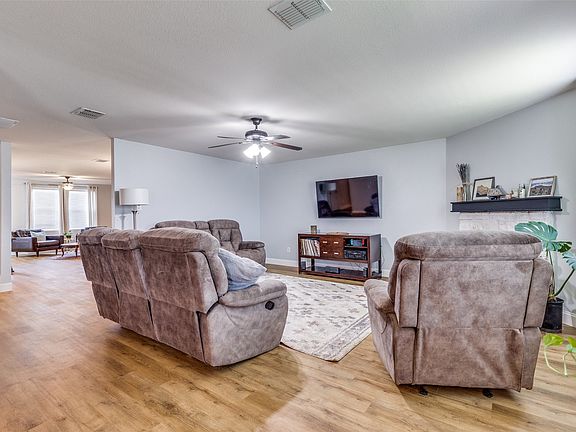 WOW 5 bedrooms, 3 full baths, 3 living areas, 3440 square feet per tax for under $400,000. Open floor plan with new engineered plank flooring downstairs. A downstairs bedroom is perfect for a study or family member with access to full bath. Kitchen has loads of cabinets and counter space along with a good sized pantry and stainless appliances. Two living areas and two dining areas downstairs allows plenty of room for entertaining. Game room upstairs comes with a projector and screen for movie night. Primary bedroom is very inviting with room for a sitting area. Primary bath has a soaking tub, separate shower and two walk in closets. The three additional bedrooms upstairs are split from the primary. All bedrooms are good sized. Fully fenced backyard with storage building and patio. The roof was replaced in 2025 and is an Impact Resistive Roof. Agent is related to Seller.