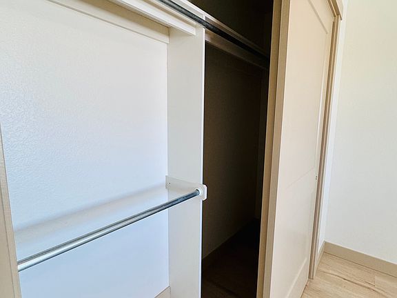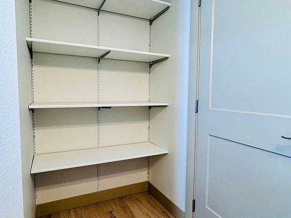 The luxury vinyl flooring adds a touch of elegance to the space while the extra storage allows for organization and a place for all your belongings.