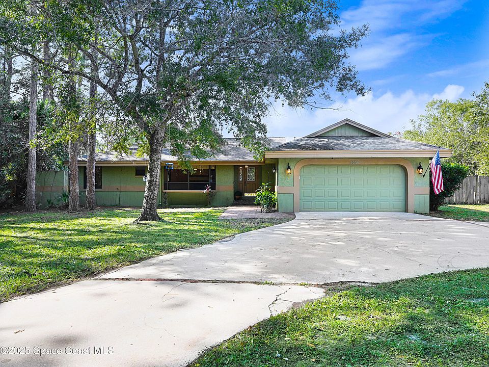 You just found the perfect home! Welcome to 1829 Laurel Oak Drive S. a truly exceptional property. Spacious 4 bedroom 3 bath block pool home on over 1.1 acre lot in Timbers-West on a quiet cul-de-sac street with circular driveway & NO HOA! Enjoy 3,080 sq. ft. of living space featuring a sprawling floor plan, Double sided fireplace and a gourmet kitchen perfect for entertaining. The primary suite offers a private retreat with sitting area while additional bedrooms provide room for family, guests or a home office. One of the bedrooms and bathroom have a separate exterior entrance making for in-law suite or other income opportunities. Step outside to your backyard oasis with an in-ground pool, fire pit, and fully fenced yard with chickens allowed! A detached 2-car garage offers extra storage or workshop space. Plenty of room for RVs, boats, or future additions. Located close to Viera shopping, dining, good schools, I-95, and a short drive to the beaches of the Space Coast. Do not wait !