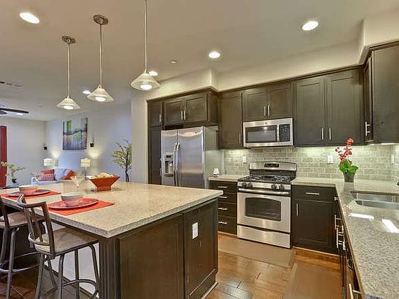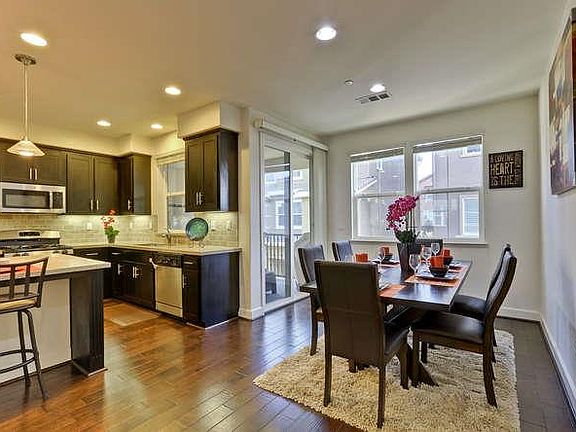 NEW LISTING, true townhouse (PUD) w/ side by side garage & no neighbors above or below! Immaculate newer Townhome in the pristine Harmony by DR Horton. Prime Location! This gorgeous home has tons of upgrades & facing NORTH. Desirable layout w/ one of bedrooms suite in the 1st level. Spacious & bright living room w/ open concept gourmet kitchen, including SS appliances, upgraded granite counter top, large island, designer cabinets & full backsplash. Beautiful hardwood floors throughout, recessed lights, pendant lights, ceiling fans, dual-pane windows, multi zone A/C & Heater. Large private patio. Each bedroom has private bath. Master bedroom suite w/ dual vanities & large walk in closet. Easy access to freeway 680/880/237, all major high techs, shops and restaurants. Walking distance to new elementary schools, park, light rail and future BART station.