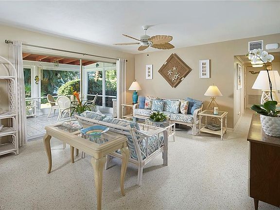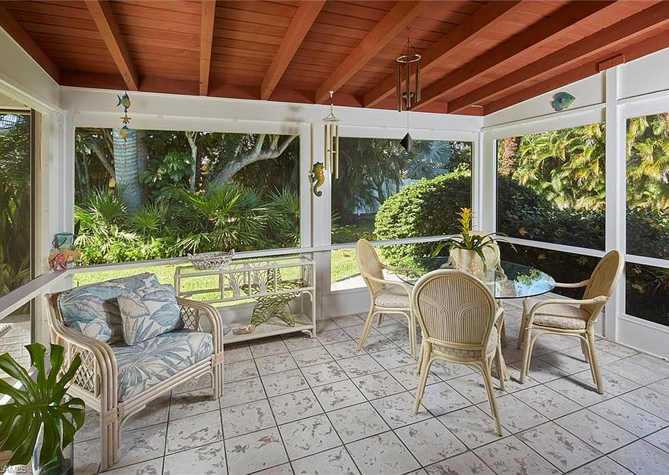 This quintessential Naples cottage has been owned, lovingly maintained and enjoyed by the same family since it was built. It is situated on an oversized rectangular .36-acre lot in the heart of The Moorings with a large sunny backyard and lots of privacy. The 3-bedroom/2-bathroom charmer has terrazzo floors, a great room floor plan and a convenient built-in desk area in the hallway. The southern exposure screened lanai has electric storm shutters. Additional features are the circular driveway, a carport/breezeway off the kitchen and mature tropical vegetation around the perimeter of the entire property. While the value is in the land, the home has been updated and improved over the years but has also retained all the charm of the era in which it was built.