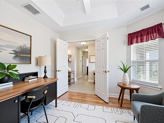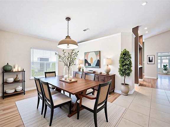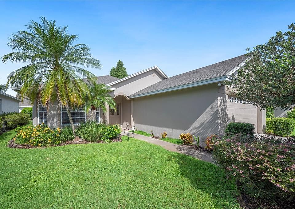 One or more photo(s) has been virtually staged. Price adjustment! You're sure to fall in love with this Lovely Home, Beautiful Neighborhood and Exceptional Location! Fantastic 3 Bedroom, 2 Bathroom house with an Office AND a Den (which could absolutely serve as a 4th Bedroom)! This Spacious and Immaculate home has such a great flow! From the Foyer to the Dining Room that leads to the Kitchen and Family Room, to the Split Bedroom Floor Plan, this Home delivers a perfect blend of comfort and convenience. Step inside to the airy Kitchen and Living area, featuring vaulted ceilings, and you'll find a wonderful home for relaxing and entertaining! The Tray Ceiling Primary Bedroom, has a wonderful ensuite Bathroom complete with double vanities, tub and a shower. Enjoy walks by the 3 lakes (and kayak or fish) in this peaceful tree lined, side walked neighborhood and then take a dip in 1 of of the 2 refreshing pools in the community. The Clubhouse is available to host special events and get togethers and if you're a tennis player, there is a court by the Clubhouse. Monthly HOA dues Include: Lawn Care, Spectrum Cable, and scheduled Roof Replacement and Exterior Painting. AND for added peace of mind: New Roof and A/C in 2023. New laminate Flooring throughout much of the home. Newer refrigerator, Dishwasher & Microwave. Much of the interior has recently been painted as well as the exterior. Water filtration system added as well as a new Gutter and Leaf filter System. So close to the new Orlando Hospital/Watson Clinic and VA Medical Facility and a minute to jump onto the Polk Parkway for easy commutes to Tampa, Orlando or Florida's award winning beaches! Such a Wonderful Property that is a Must See! Please call to schedule a private showing!