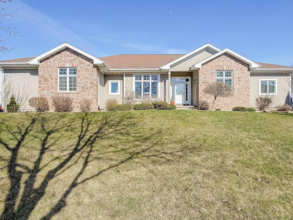Showings begin 3/22. Serene views and vibrant sunset overlooking the countryside in Hawks Landing! This custom built ranch has an open concept with high ceilings, crown molding, newer interior paint, carpet, stainless steel appliances, furnace and a/c. The 20x50 maintenance free deck off the sunroom and great room has built in gas line to fire pit, grill, overlooking the beautifully landscaped yard. Owners suite has crown molding, large double vanity, heated jetted tub and tile shower. Great room w/ gas fireplace, built ins and plenty of windows for great views and open to kitchen. Exposed lower level has wet bar, game area, 2 large bedrooms and full bath. Plus great work out area. Zoned wireless system, whole house stereo, access to basement from garage and second laundry area.