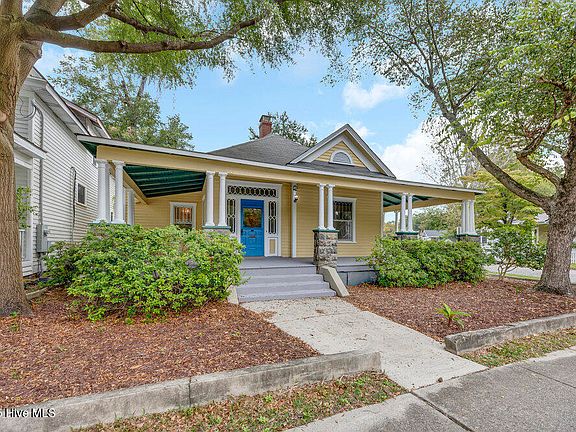 Step onto the wrap-around front porch of this 1907 Carolina Place corner-lot classic and feel the blend of history, character, and easy everyday living. Freshly painted inside and out, this 3-bedroom, 2-bath home pairs turn-of-the-century craftsmanship with modern updates and hardwood floors throughout. Fans of One Tree Hill will recognize the exterior: it appeared as Karen's home in Seasons 1-6 and later as Lucas and Peyton's. Pop-culture pedigree aside, the layout lives beautifully. The foyer opens to a sitting room, then flows into a light-filled living room. Each has a decorative fireplace as a timeless focal point (sellers have not used them). The renovated eat-in kitchen delivers an inspired mix of style and function with stainless steel appliances, a farmhouse sink, floating shelves, shiplap walls, and butcher block countertops. Three comfortable bedrooms include a refreshed primary suite with a walk-in tile shower. With more than 1,600 square feet, rooms feel open yet defined—perfect for daily routines and effortless gatherings. Location seals it. You're moments to the YMCA and Wallace Park, and minutes to Downtown Wilmington's riverfront, galleries, and dining, plus the creative energy of the Cargo District. In short, this Carolina Place treasure offers a storied façade, a move-in-ready presentation, and thoughtful updates where they matter most—true historic charm paired with modern convenience in one of Wilmington's most beloved neighborhoods. For information about our preferred lender and the incentives you may qualify for, please ask your agent to review the agent comments for additional details.