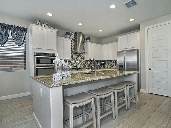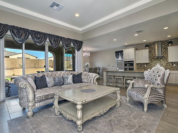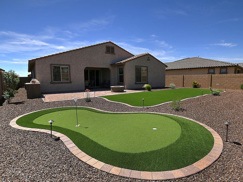 BUILT IN 2017! LIKE NEW WITH OVER $35,000 INVESTED IN THE BACK YARD, INCLUDING PAVER PATIO, BUILT-IN BBQ, ARTIFICIAL TURF, PUTTING GREEN, FIREPIT, LANDSCAPE LIGHTING, & DESERT LANDSCAPING! EXCELLENT LOCATION NEAR PRESIDIO RESIDENTS CLUB W/POOL & FITNESS CTR! JUST MINUTES FROM GOLF COURSE & LAKES! REFRIGERATOR, WASHER, & DRYER INCLUDED! FURNISHINGS AVAILABLE ON SEPARATE BILL OF SALE! This well appointed 3 Bedroom+Den home boasts high/coffered ceilings, plank tile flooring, granite countertops in Kitchen and Baths, upgraded white cabinets with crown molding, custom tile backsplash, stainless steel appliances, gas cook top, oversized Kitchen sink, spacious Great Room & Master Bedroom with recessed lighting, crystal chandeliers, tiled tub & shower with glass enclosure, soft water loop, & more!