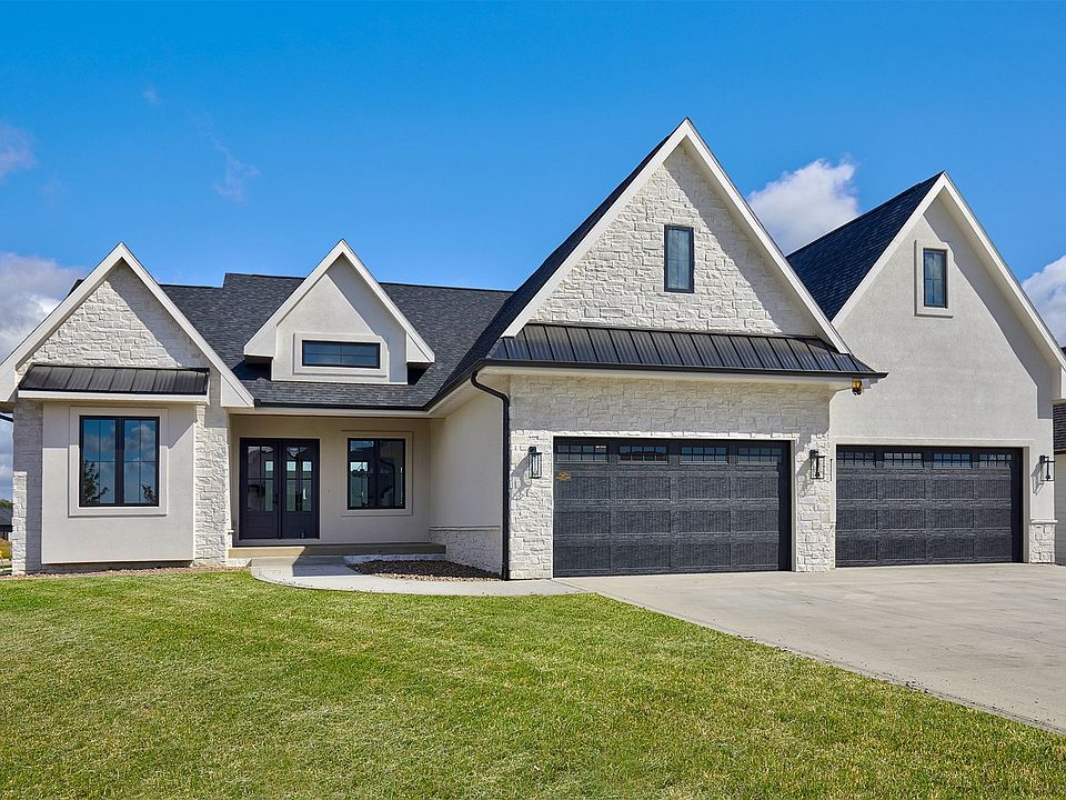 Stunning and Inviting New Walkout Ranch custom home in highly desirable Shadow Creek West by Iowa Premier Homes! You'll Fall in Love! Home features over 4100sf of quality custom finishes throughout with 6 bedrooms, plus a BONUS room! Spacious family room with tray ceiling/wood beams, fireplace, & custom cabinetry/shelving. Open to large kitchen with quartz counters, walk-in pantry, gas cooktop with pot filler, double wall ovens, 10 ft island/breakfast bar, & dining area leads to sliders to vaulted covered maintenance free composite deck with stone fireplace for relaxing! Primary Bedrm ensuite with tray ceiling, walk-in closest, spa-like bath with dual vanities, soaking tub & large tile shower. Two additional bedrooms, full bath, guest powder rm, laundry rm with soaking sink, & drop zone completes the main level. Finished walkout lower level includes 2nd family rm, 3rd fireplace, fabulous wet bar, three more oversized bedrooms with walk-in closets (one BR is another ensuite with private 3/4th bath), plus BONUS flex rm, & full bath. Walkout to spacious covered & open patio & backyard. Four car garage with electric car charger outlet! Attention to detail throughout with gorgeous LVP flooring on main level, accent walls, Anderson windows, custom built-in closets, high-end appliances, dual zone multi stage heating/cooling, irrigation are some of the many upgrades this home has to offer. Prime location & Waukee schools. All information obtained from Seller & public records.