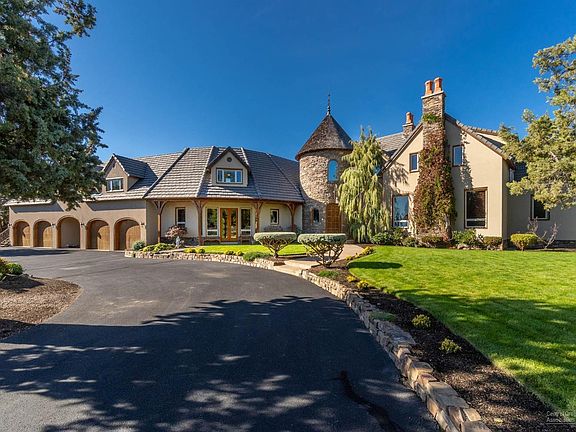 From the moment you pass through the iron gates at 18299 Snow Creek Lane, you know you're somewhere special. This incredible estate between Bend and Sisters features travertine and mahogany floors, vaulted ceilings, and custom touches throughout. Two living areas on the main level offer framed views of the Three Sisters Mountains, and allow access to the heated pool, multiple patios, and hot tub. A well-appointed chef's kitchen opens to both living areas. A study/library off the living room includes a built-in desk and gas FP with origins in England. Also on the main level, you'll find the Master, featuring a large walk-in closet, double shower, & soaking tub. Upstairs, find a large game room with and deck w/ views, as well as a large media room, featuring theater seating (negotiable) and A/V equipment (included). Three more guest suites, including one with its own separate entrance, are also upstairs. Outside, find an attached four-car garage and detached 2496 SF shop w/ lift.&nbs
