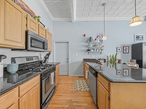 Welcome to 183-185 Rindge Ave Unit 1,a Cambridge condo that perfectly blends historic character with modern convenience. Set on the first floor, this thoughtfully maintained home offers a warm and inviting living room highlighted by soaring original tin ceilings that are complimented by crown molding that continues throughout, tying the home together with timeless sophistication. The open floor plan creates seamless flow into the dining area and a showpiece kitchen designed for both function and style. A generous island, bar seating, and peninsula provide ample space for cooking, entertaining, and casual dining, all enhanced by beautiful stone countertops. The spacious bedroom serves as a peaceful retreat with refined finishes. Additional features include a private outdoor porch and private laundry. Ideally located near parks, shops, restaurants, and transit, this residence offers a rare combination of charm, comfort, and accessibility in one of Cambridge’s most desirable neighborhoods