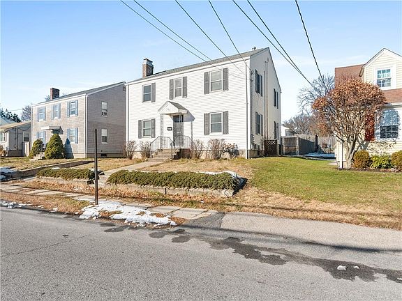 Nice solid two family home in excellent location across the street from Budlong Pool in Cranston. Both floors have hardwoods in living room hallway and bedrooms. House is somewhat dated but in excellent shape! The hardwoods gleam! This home would be perfect for owner occupy! Two bedrooms each floor, all appliances remain including washer and dryer in basement. The yard is fully fenced, small patio, and a two car garage with electricity in garage. Separate gas meters for heating and separate electrical. First floor unit has extra space as an enclosed, finished, heated area for dining etc...with sliders that go out onto a handicap ramp. HAVE YOUR TENANT PAY HALF YOUR MORTGAGE!!!!