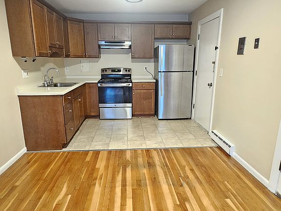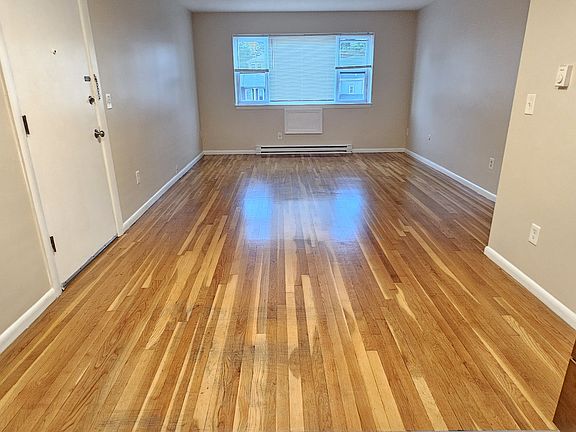 This bright and inviting two bedroom apartment located on the second floor features an open floor plan with nice sized bedrooms, perfect for comfortable living and entertaining. This freshly painted apartment has beautiful hardwood floors throughout and lots of kitchen cabinets. Zone heating allows for individualized control. There's shared laundry in the apartment and off street parking available. Water and hot water are included in the rent, with tenants responsible only for electricity and electric heat. This apartment is situated in a highly convenient area, steps away from local coffee shops, restaurants, bus transportation to nearby train stations, and a variety of other amenities. This a great location for both commuters and outdoor enthusiasts. Don't miss out on this beautiful and comfortable home. Schedule your showing today! Owner pays for water and hot water. Renter is responsible for electric heat and electricity. First and last month's rent is due at signing. No smoking allowed. Cats are allowed.