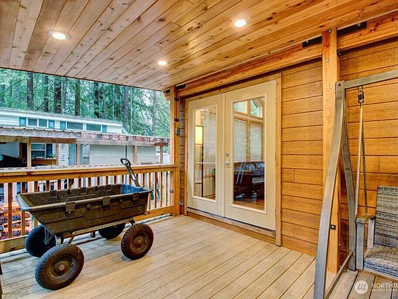 One of a kind amazing VSI park model, deck, add-a-room, shed combo adjacent to greenspace where the mighty Nooksack River travels through a canyon. Property comes fully furnished indoor/outdoor. You can sleep 10 comfortably in four different sleeping areas. Modern appliances/kitchen/bathroom, AC, 30 gal hot water heater, Levolor double honeycomb shades, and LED light bulbs, and Honeywell Home thermostat plus many more features make this park model/cabin an amazing home base for Mount Baker lovers. Zoned rec & is limited to 120 days/yr. and has all the amenities you could want, including 2 pools, hot tub, Pickleball, library, laundry mat, 2 clubhouse, 24 hr security, gated entry, & play areas. FINANCING AVAILABLE VIA 21ST MORTGAGE.