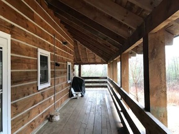 2005 custom built log home. Offering 4 bedrooms with 2 full and 1 half bath. wide plank hard wood floors, knotty pine and custom built stairs to the second floor. Large first floor master with french doors leading to the wrap around deck offering nice outdoor entertainment space. Nice open floor plan for indoor entertaining. Walking distance to state boat launch, and the Public beach is just a hop and a skip away. Lake living without the taxes. Carport to leave the boat under when you return from the lake. The unique and custome design is sure to be a crowd pleaser weather this is the vacation/second home or your forever permanent residence. Many updates: New Furnace, 75% roof replaced, woodstove, splits for air conditioning, radiators, newer appliances. some furnishings can stay.