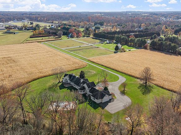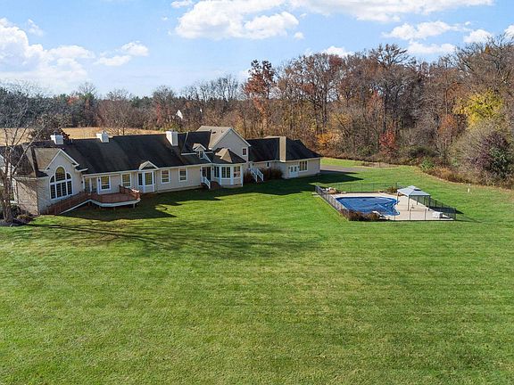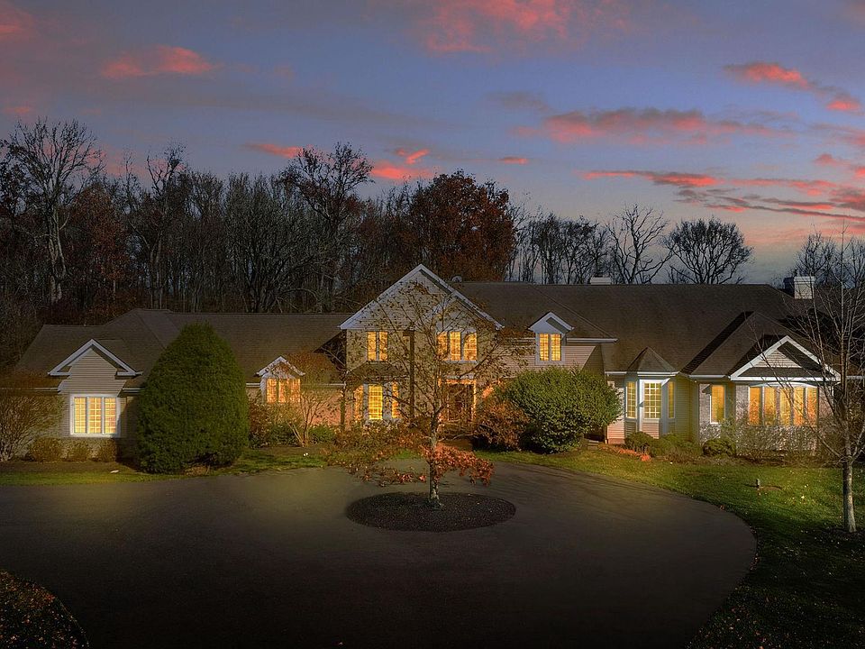 Set on more than 19 acres of open pasture and peaceful treeline, this beautifully maintained Colonial offers exceptional space, privacy, and a floor plan designed for comfort and flexibility. A welcoming foyer opens to a traditional layout with bright, generously sized rooms, including living room, dining room, family room, full bath, laundry room, and a well-appointed kitchen. The kitchen flows into a stunning window-lined breakfast room overlooking the backyard, creating an ideal setting for everyday living or quiet mornings with a view. Just beyond, a stunning custom addition houses an expansive main level primary suite, an extensive bedroom with fireplace, large modified full bath, FOUR walk-in closets (two of which are large enough for multi-purpose use), a dedicated office, and its own great room with abundant natural light, a powder room, and a full second kitchen, all offering remarkable versatility for hosting guests, extended stays, multi generational use, or simply enjoying an additional family living space. The upper level of the main home includes four comfortable bedrooms, highlighted by a generous junior suite, with its own spa-like bath, fireplace, and ample closet space. Throughout the residence, four total fireplaces add warmth and character to the principal living areas. Outdoor amenities include a fenced in-ground pool, expansive decking and patio areas, and sweeping views of the surrounding landscape. With over 19 acres to enjoy, the property easily supports gardening, outdoor recreation, or quiet appreciation of the countryside. Enjoy an oversized 4- car garage and large walk-in storage space. Spacious, private, and thoughtfully designed, this property offers adaptable living options and beautifully crafted spaces inside and out.