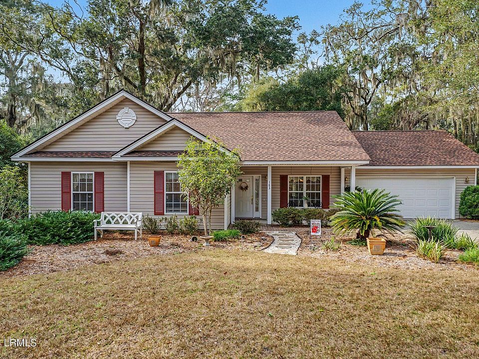 Lovely, well-maintained home on Lady's Island, set on a spacious 0.66-acre wooded homesite with no HOA or CCRs. Beautiful mature live oak trees provide shade and privacy, creating a serene Lowcountry setting.