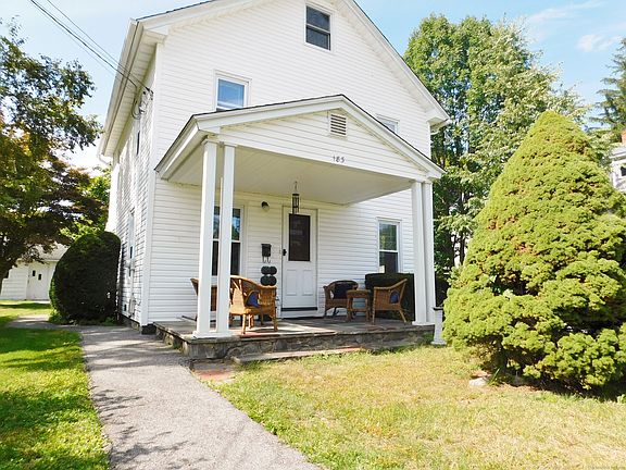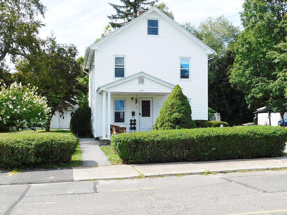 Step into the character and charm of this adorable 1880 Colonial home, offering a welcoming layout full of natural light and classic details. A covered front porch with beautifully crafted slate flooring invites you to sit and enjoy your morning coffee or greet guests with timeless curb appeal. While the home may need a few cosmetic updates, it features newer vinyl siding, a new hot water heater, and efficient gas heating, providing a solid foundation for your personal touches. Enjoy the convenience of public water and sewer. Outside, the property boasts a detached garage and an additional detached outbuilding-fully equipped with electricity and a wood stove-makes an ideal home office, creative studio, or hobby space. The spacious backyard offers room to relax, garden, or entertain, all within a short distance to town amenities and major routes. Whether you're looking for a starter home, a project with promise, or a quaint retreat close to everything, this gem is ready to shine with your vision!