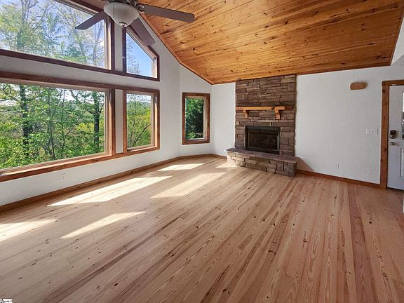 Welcome to this stunning 2-bedroom, 2-bath Landrum home with updates throughout! Walking up to the house, you'll notice a freshly-painted and welcoming exterior and a large covered deck, perfect for outdoor entertaining. Head inside and be greeted with newly refinished and gleaming hardwood flooring on the main level. The spacious living area opens up with high ceilings, a large wall of windows with beautiful views and plentiful natural light, and a fireplace, perfect for those chilly winter evenings. The kitchen is sure to please with new stone counters, tile backsplash, stainless appliances, and freshly-painted cabinetry. Make this your new home today! This home has been virtually staged to illustrate its potential.