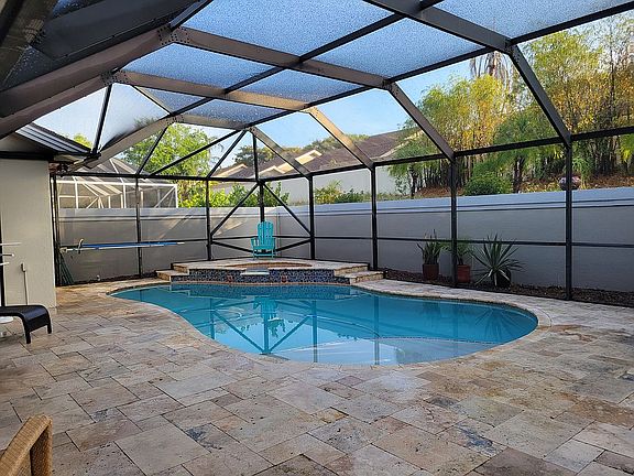 Divosta built 3 bedroom 2 full baths, 2 car garage in highly desireable neighborhood of Ridge @ The Bluffs. This home features a heated pool, hot tub, tile & wood flooring throughout, updated kitchen & bathrooms. The HOA offers a community pool, pickel ball, tennis , basketball courts & onsite property manager.